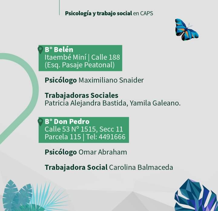 – CAPS Los Paraísos (Calle 61 N° 9860, entre Güemes y Hernández). Teléfono: (0376) 44-88571.