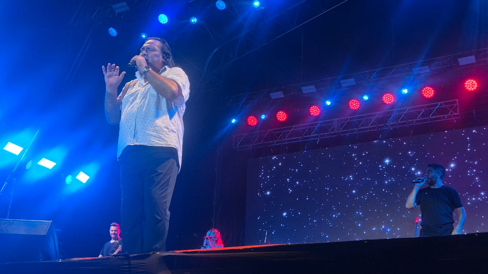 Más tarde, el escenario recibió a Los Mitá, quienes interpretaron “Misiones es mi lugar”, seguido de un chotis titulado “Galpón de chacra”, que marcó uno de los momentos más participativos de la noche: comenzaron a armarse parejas de baile tanto en el escenario como entre el público, al ritmo de las primeras palmas y sapucai que se hicieron sentir con fuerza. También sonó “Reviro con ticueí”, consolidando un tramo bien arraigado en la identidad local.